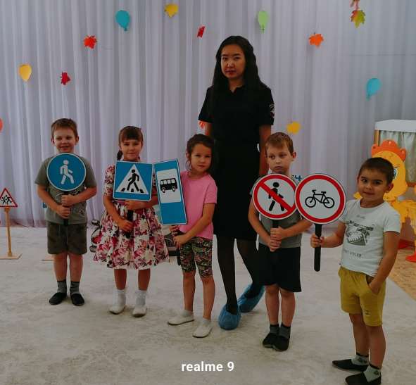 В рамках месячника безопасности совместно с сотрудниками отделения пропаганды безопасности дорожного движения организованы практические занятия с детьми по ознакомлению с правилами дорожного движения «Правила дорожные, знать каждому положено!». Сотрудник Госавтоинспекции после веселого приветствия, поиграл с детьми в игру «Узнай дорожный знак», рассказал о правилах перехода улицы, проезда в транспорте, важности использования светоотражающих элементов в одежде.