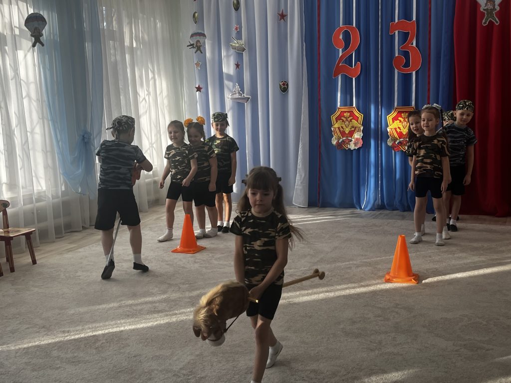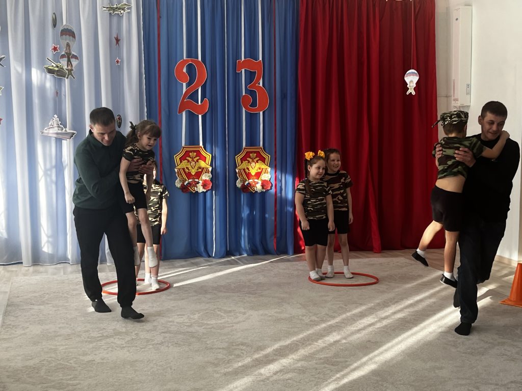 В преддверии Дня защитника Отечества в нашем дошкольном учреждении прошли праздничные мероприятия, в которых принимали участие дети всех возрастных групп. На празднике воспитанники пели песни, читали стихи о защитниках России, играли в подвижные и музыкальные игры, отгадывали загадки о военных профессиях. Дети продемонстрировали всю свою силу, ловкость и смекалку в весёлых конкурсах и эстафетах. Большой интерес у детей вызвало совместное участие в конкурсах с папами и дедушками. Папы выступали в роли разведчиков, спасателей и метких стрелков. Дедушки провели курс «Молодого бойца»!