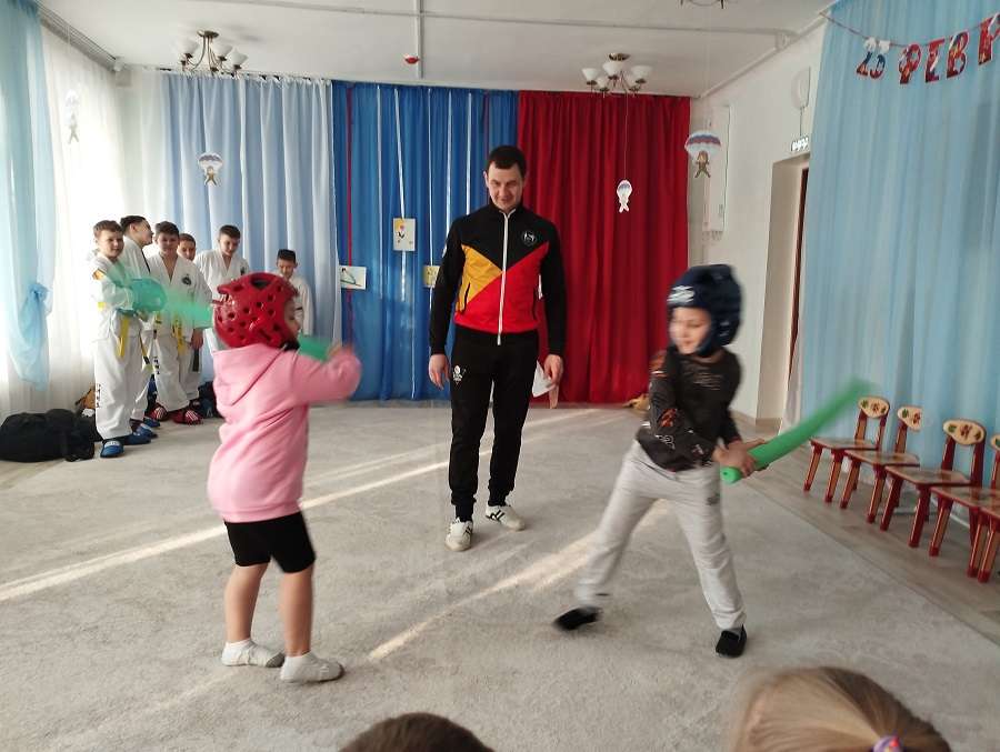 Для приобщения детей к спорту, занятиям физической культурой в рамках реализации проекта «Здоровье, комфорт, безопасность» с детьми среднего и старшего дошкольного возраста организовано интересное мероприятие «Кресло гостя «Спортсмен». В детский сад пришли настоящие спортсмены, ребята, занимающиеся боевым искусством «Тхэквондо».